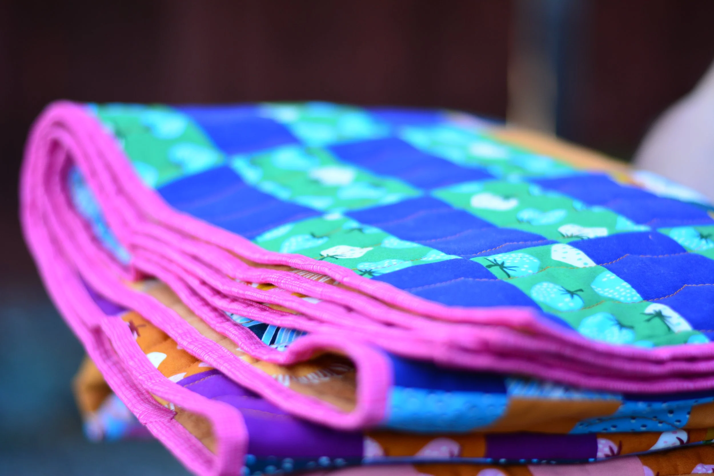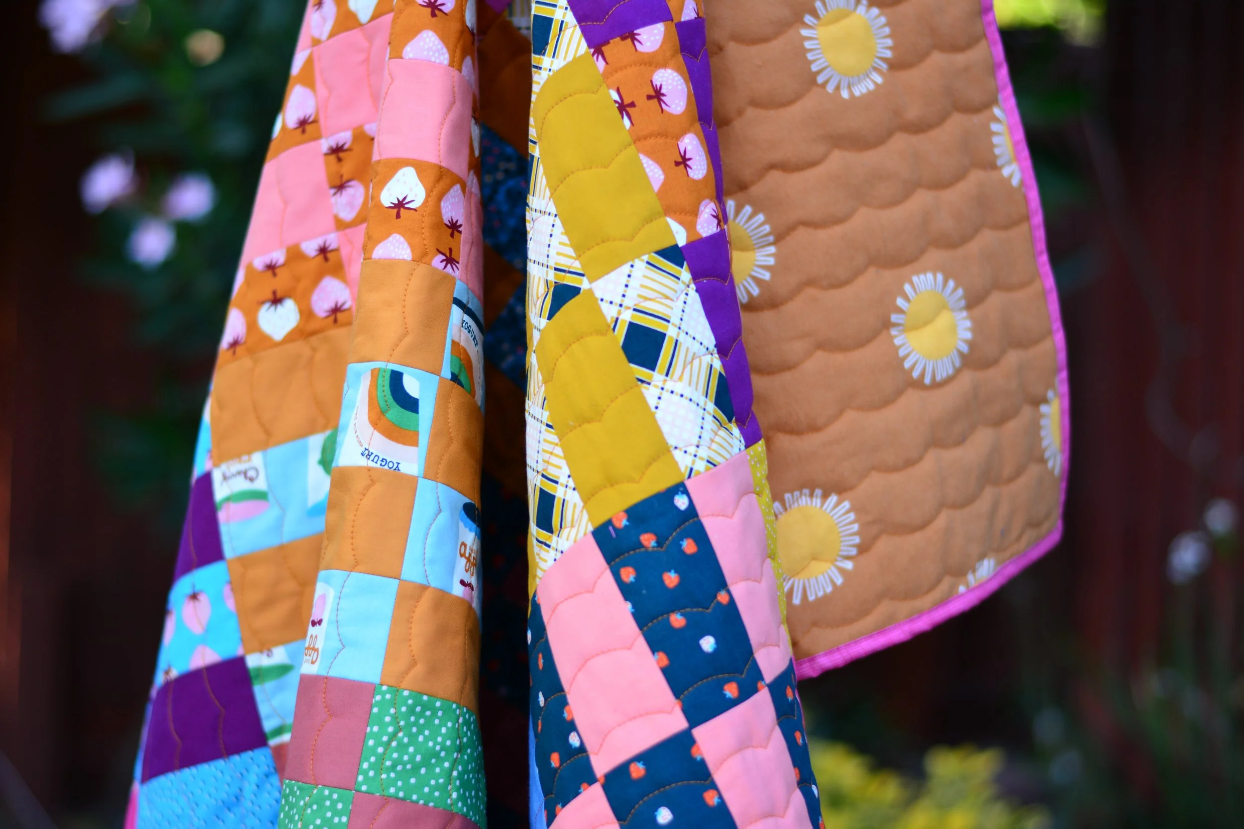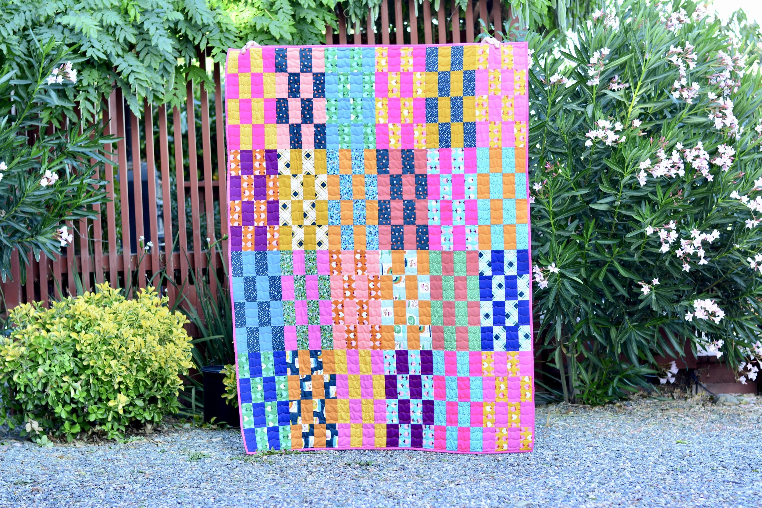 Last summer I was working on a sixteen patch quilt and created a tutorial for it. You can find the tutorial here. Since then, I finished the quilt and I’m so happy how it turned out. It is bright and cheerful and so easy to make. I used Kona solids from my scraps and a scrap back from Ruby Star Society (such lovely prints). To quilt the quilt I used a wavy stitch on my Janome machine. I can’t believe how stunning the stitch looks. I opted for a brown/mustard color thread and I love how well it complements all the bight fabrics.